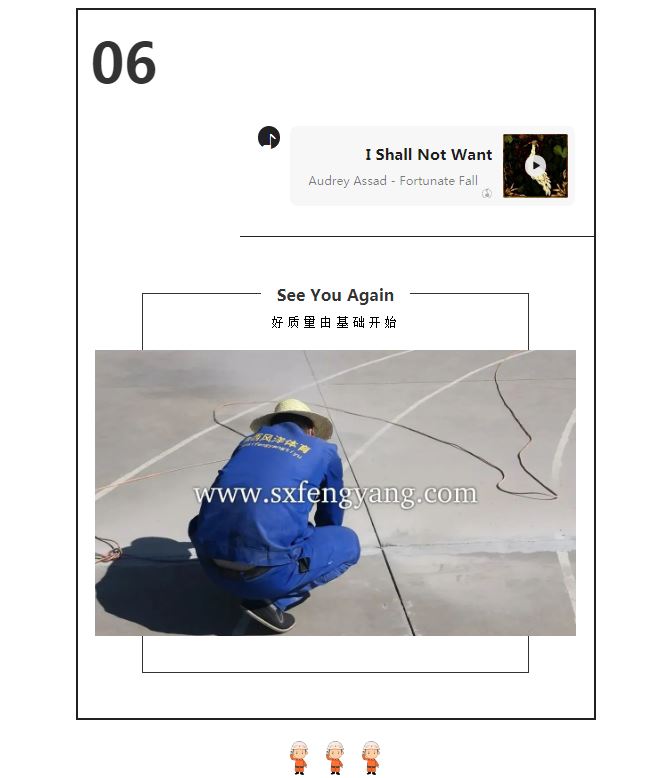 陜西風(fēng)洋建設(shè)工程有限公司承接塑膠跑道|幼兒園跑道|拼裝地板|硅PU籃球場(chǎng)|人造草坪|運(yùn)動(dòng)木地板等材料銷售及施工,并提供配套的球場(chǎng)圍網(wǎng)|燈光|看臺(tái)座椅等設(shè)施。為學(xué)校|企事業(yè)單位提供設(shè)施項(xiàng)目|工程項(xiàng)目.涉及全國各地,至今已完成1000多場(chǎng)館。是銷售|設(shè)計(jì)|施工一體化的知名企業(yè)。多年來,公司貫徹執(zhí)行科學(xué)管理、創(chuàng)新發(fā)展、誠實(shí)守信的方針,大限度的滿足客戶需求。與您之間只差一個(gè)電話:13991376582