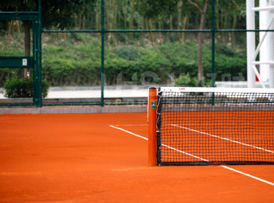 紅土球場,是一種多孔滲水的網(wǎng)球場地,是由天然礦石、天然火山灰混合特殊的天然黏土精煉而成。一個(gè)建造良好的沙地球場橫切面,其購造的層次如下:表面物質(zhì)下面接著是由砂石熔渣或粗砂石所組成的碎石層,然后是滲透層,最下面是排水管。