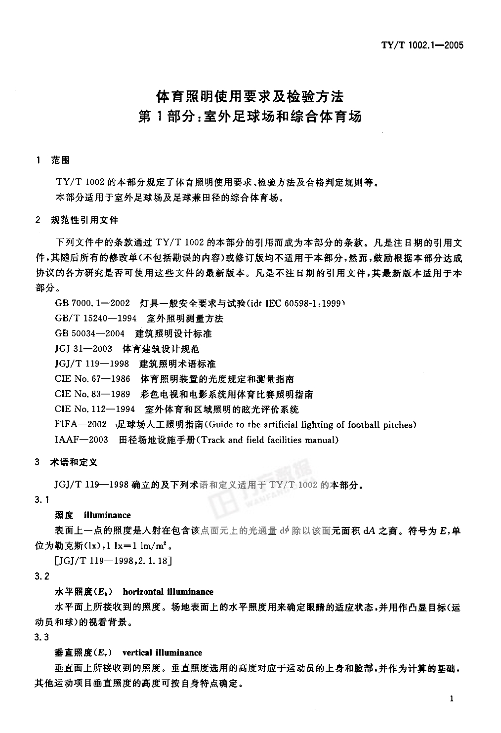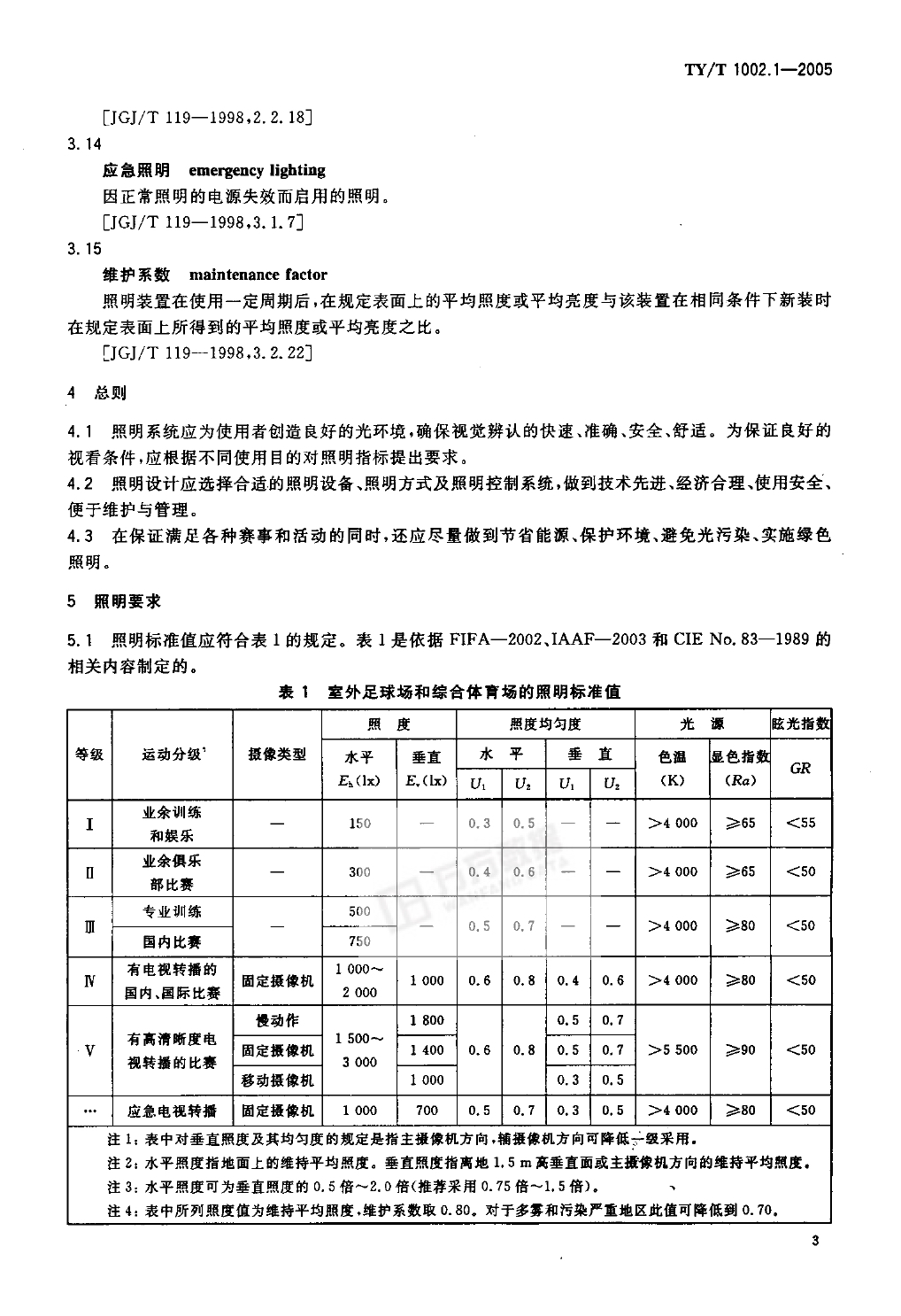 體育照明使用要求及檢驗方法