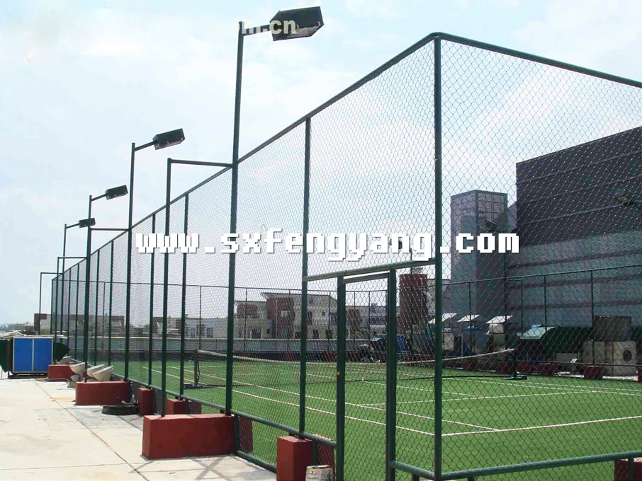 按照上述安裝步驟依次安裝體育場四周立柱。立柱裝完后矯正立柱,以保證所有的圍網(wǎng)平整性。