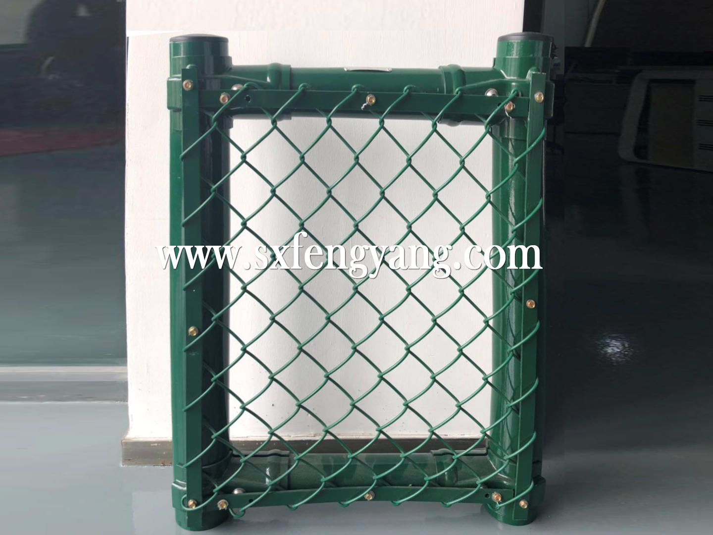 把所有的圍網(wǎng)按照要求尺寸依次擺開。搬運過程輕拿輕放,保證塑膠不被損壞。圍網(wǎng)抬到立柱上,連接附件孔對準后用防盜螺絲穿好,圍網(wǎng)高度和立柱高度保持一致,最后用電鉆把防盜螺絲栓擰緊。依次固定其他框架上的圍網(wǎng)。